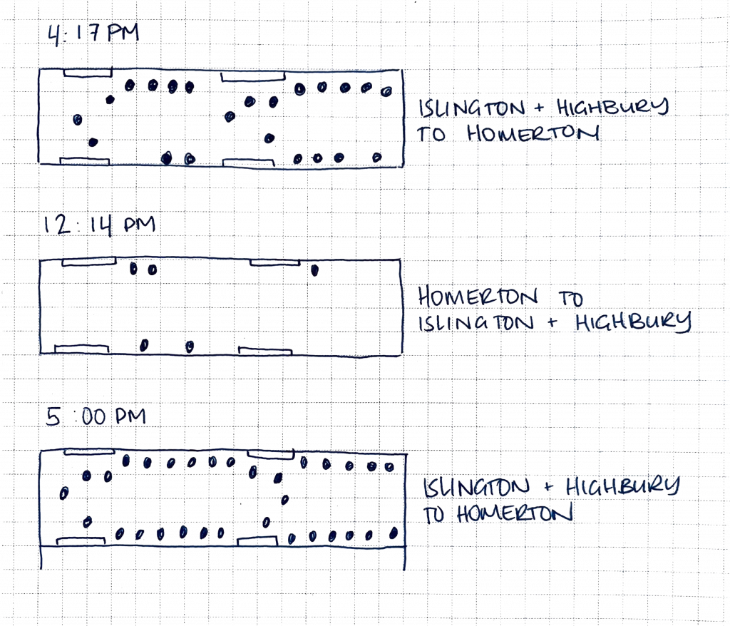 the fourth carriage of the Homerton to Islington & Highbury overground.